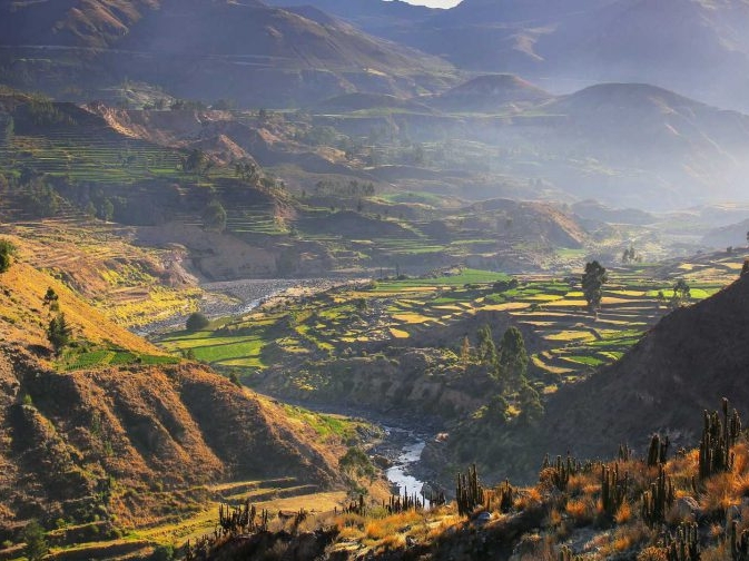 Journey along the edge of the dramatic Colca Canyon, pausing to photograph breathtaking vistas. Marvel at centuries-old Inca agricultural terraces, ingeniously carved into the landscape and still farmed by local families.
