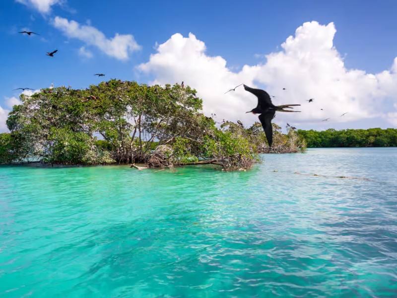 Set off into the breathtaking Sian Ka'an Biosphere Reserve, a UNESCO World Heritage Site renowned for its tropical forests, mangroves, wetlands, and pristine coastline. As you journey by boat through winding mangrove estuaries—the same ancient waterways once traveled by Maya traders—prepare your camera for the abundant wildlife.