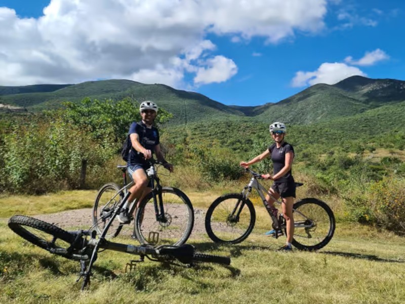 Off-Road Thrills: Ancient Mine & Valleys Midway, veer off onto an exhilarating 40-minute XCO MTB trail—perfect for basic to intermediate riders. Here, you’ll ride through rugged landscapes, discover the remnants of a centuries-old mine, and take in the serene beauty of Oaxaca’s countryside.