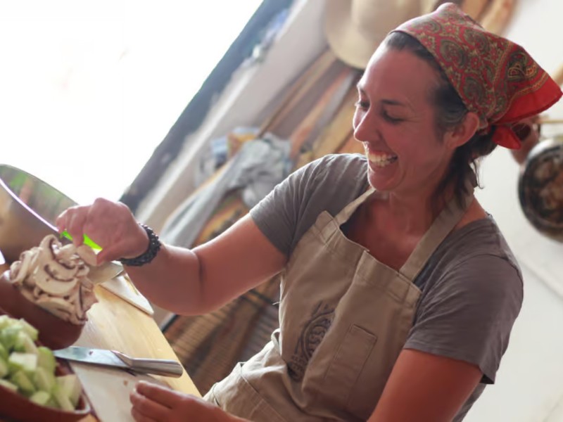 Colorful Market Adventure Kick off your day amid the vibrant sights and sounds of a bustling Oaxacan market. Guided by a local expert, pick out the freshest chilies, herbs, and mystery regional ingredients—each essential for crafting the day’s signature mole.