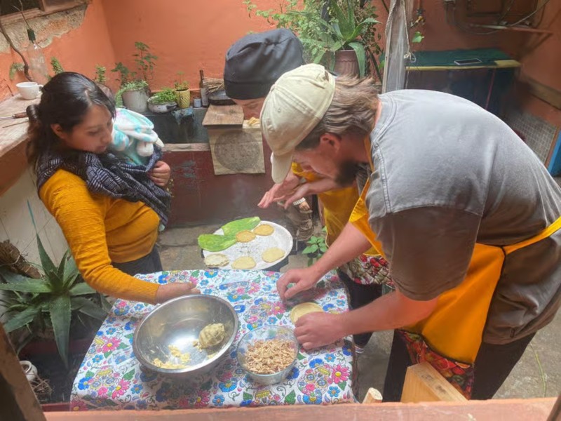 Cook with the Masters Discover kitchen secrets and new techniques as Chef Hiram, a world-traveling chef and artist, and Patricia, a celebrated food engineer and vegan expert, guide you through each step. Their passion and stories breathe life into each dish and recipe. Snack, Sip, and Savor Enjoy tasting local snacks and sample the traditional Chiapas drink, pox, as you whip up delicious salsas and fillings. Savor the warmth and spice of every bite, with new friends all around.