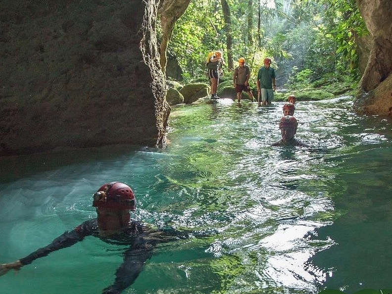 Prepare for an exhilarating swim across a cool, spring-fed pool to access the cave. Venture deeper as your guide leads you through twisting passageways, echoing chambers, and areas lined with glittering stalactites and stalagmites.