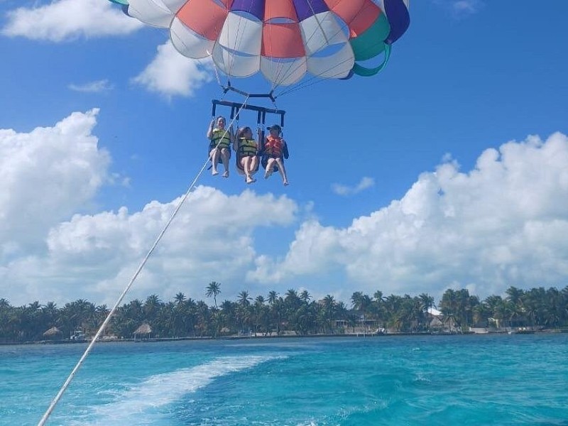 Take Flight: Parasailing Above the Caribbean Strap in and gently lift off from Ambergris Caye’s bright beaches, ascending above the shimmering turquoise waters of the Caribbean. Feel the thrill of soaring through tropical breezes, surrounded by endless sea and sky. Spectacular Sights: Spot Marine Wonders Scan the crystal-clear waters below for an unforgettable view of sea turtles, rays, nurse sharks, or maybe even playful dolphins gliding beneath your feet! These magical moments bring the ocean’s wonders up close.