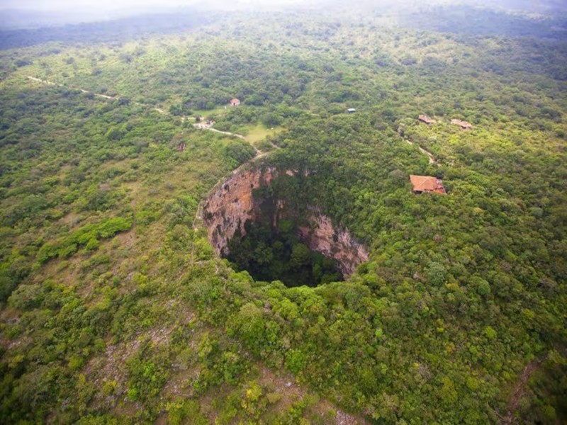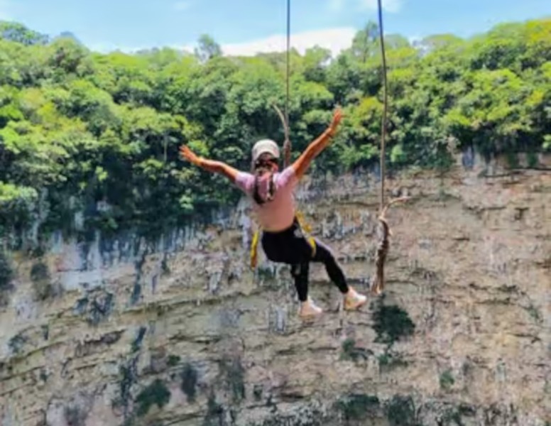 Arrive at the magical "Cascada El Aguacero." Descend a dramatic stone staircase into a lush canyon where crystal-clear waters tumble down over rugged limestone. Splash, swim, or simply unwind by the cascading pools—this enchanting oasis is perfect for relaxation and fun with family or friends.
