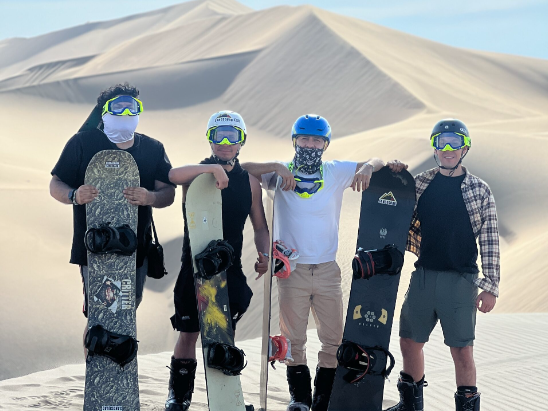 We enjoy the sandboarding experience in differents dunes of the desert.